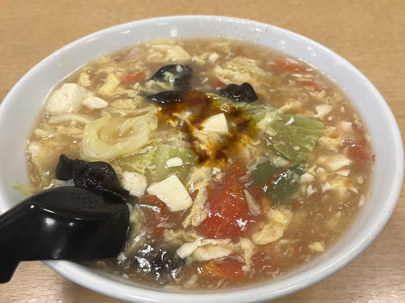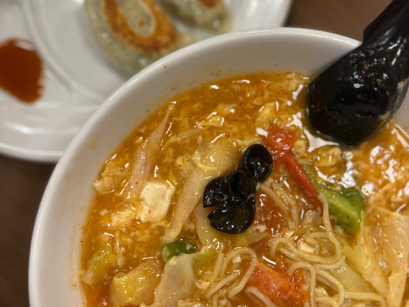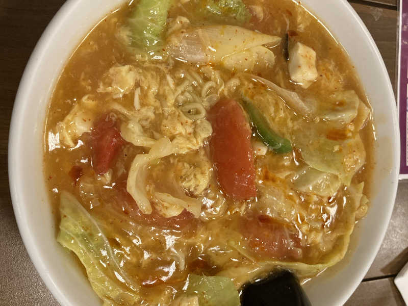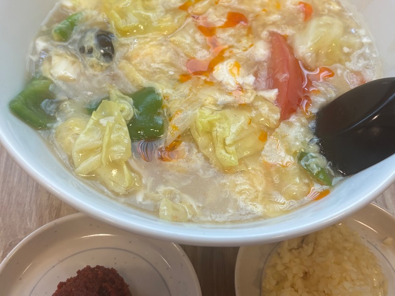 風邪ひいてるので、ニンニクと辛玉をトッピング🍜🍅🧄