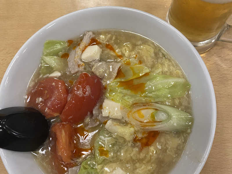 朝飯抜きのサウナ後に食べる一杯は最高にしみる