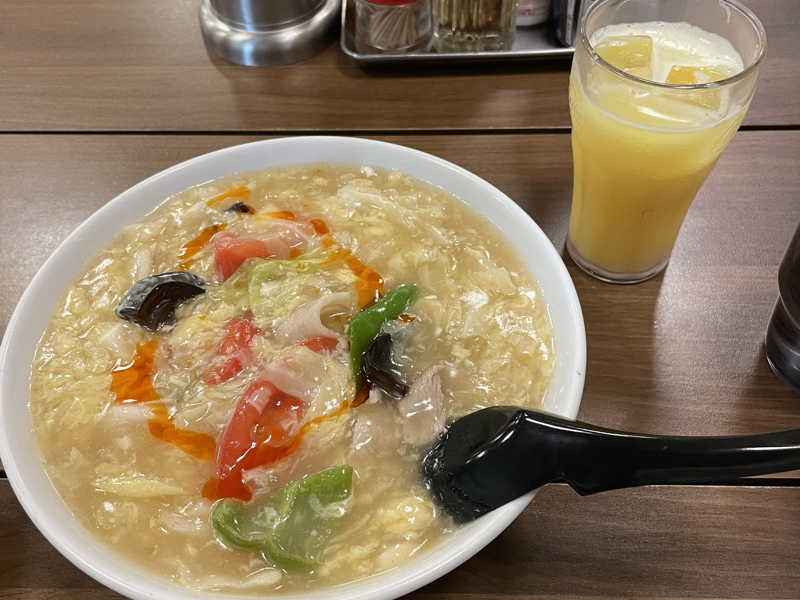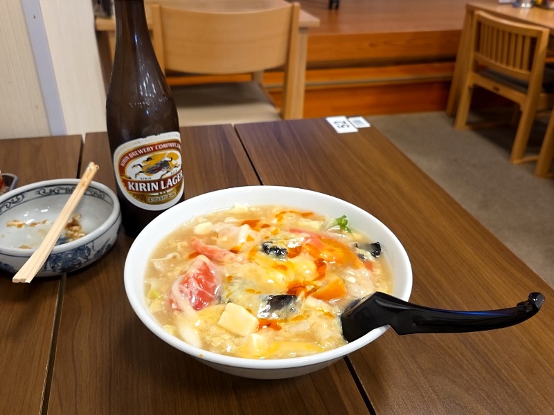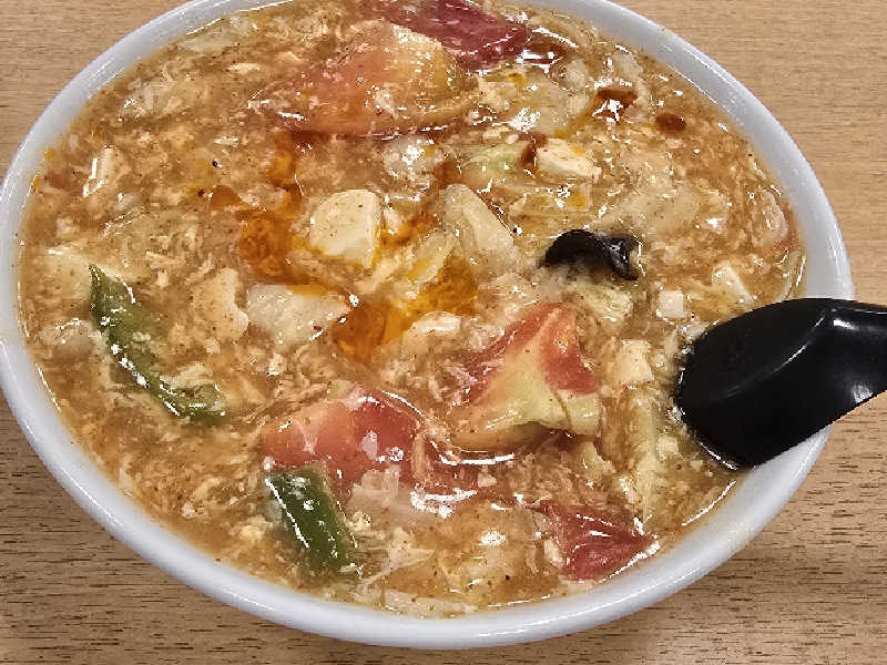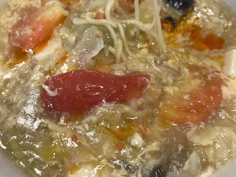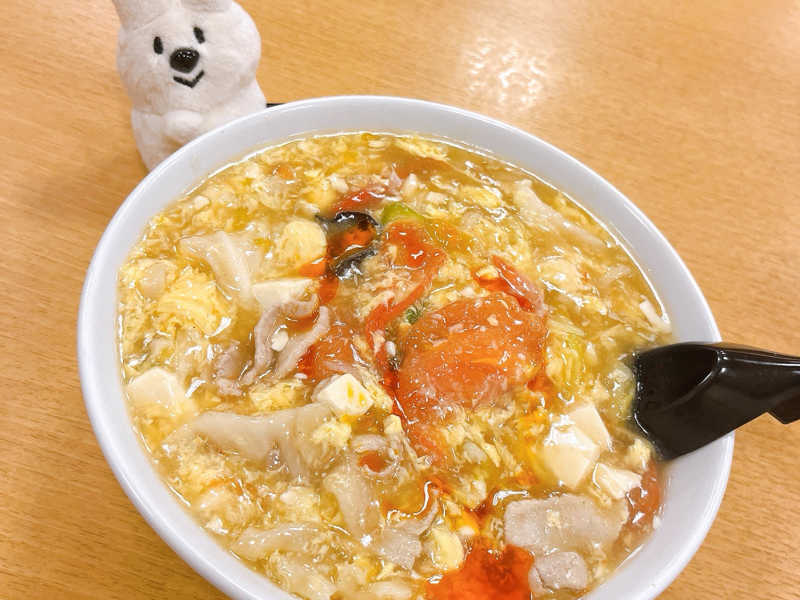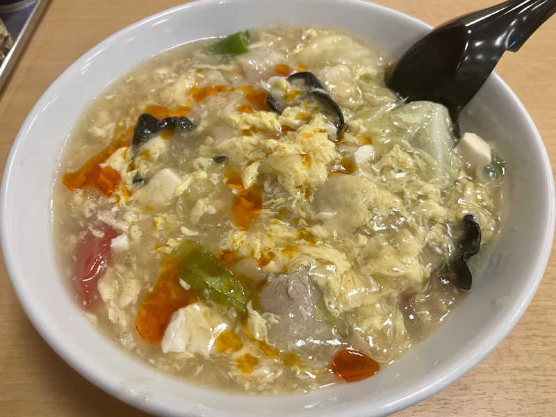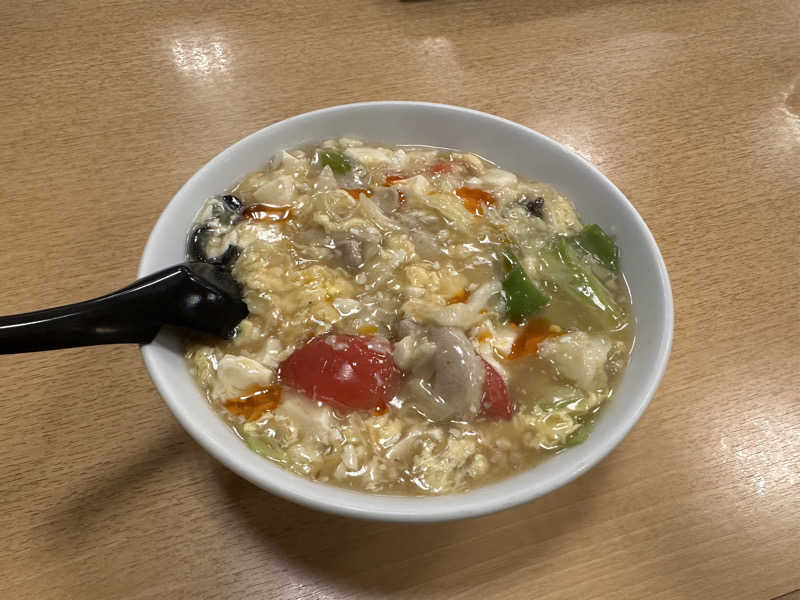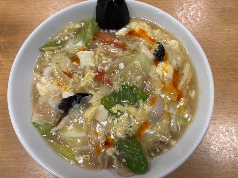 塩ベースの酸っぱうま。餡掛け具材たっぷり。熱いので食べるのには時間がかかる。