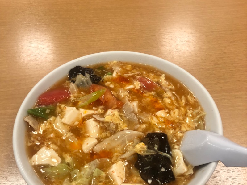 すっぱうま辛!あっつあつなので食べるのに時間がかかるけど、おいしー!1辛でもけっこー辛い!