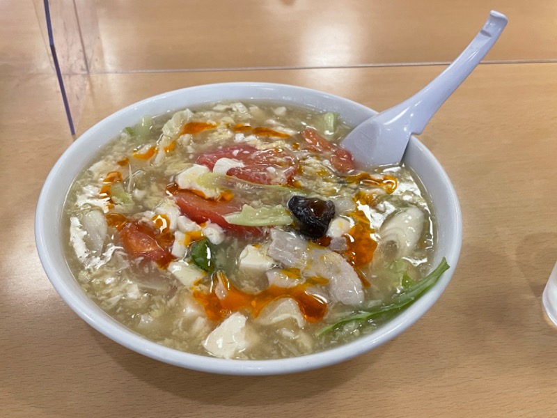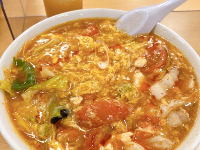定番メニューだけど初めていただきました。酸っぱ辛くて汗だく💦 具だくさんで嬉しい😋
