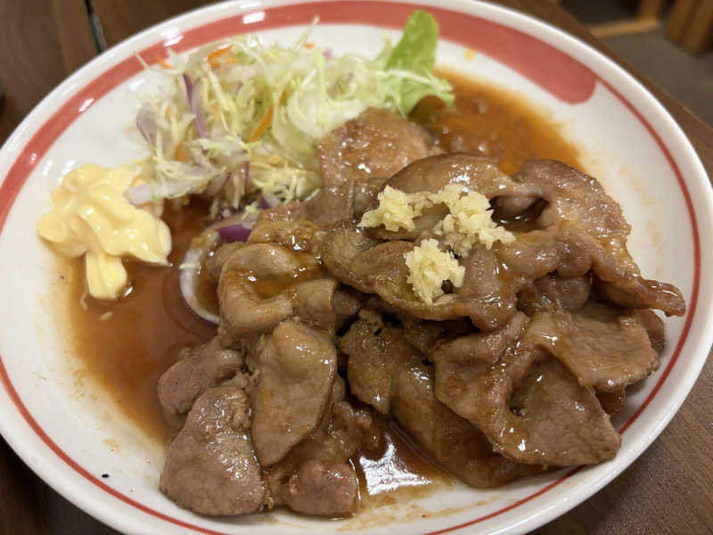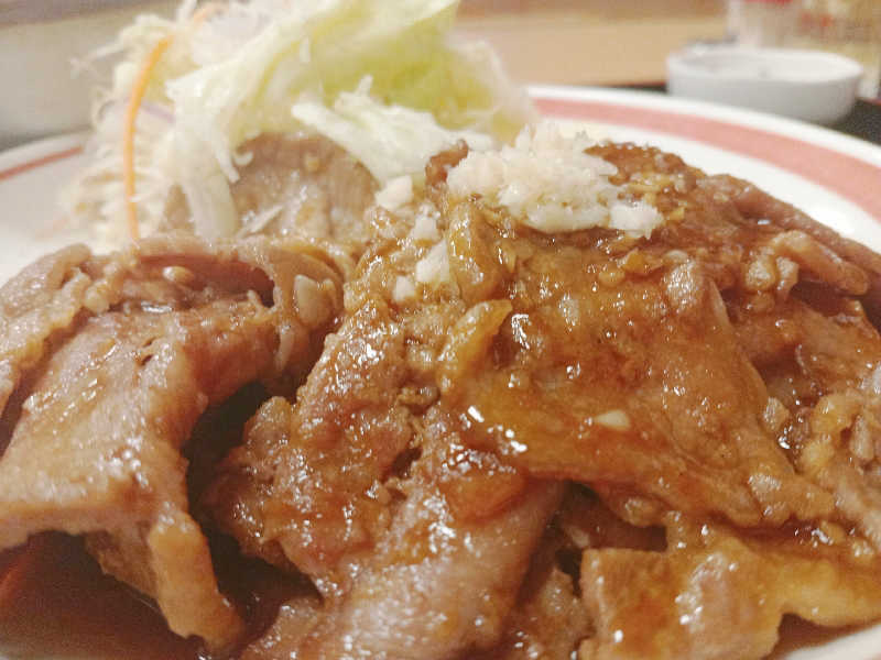 生姜焼きをにんにくにした感じ。肩ロースを6枚使っているそうで、かなりのボリューム。サウナ後には最適!