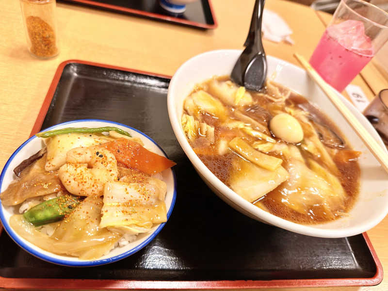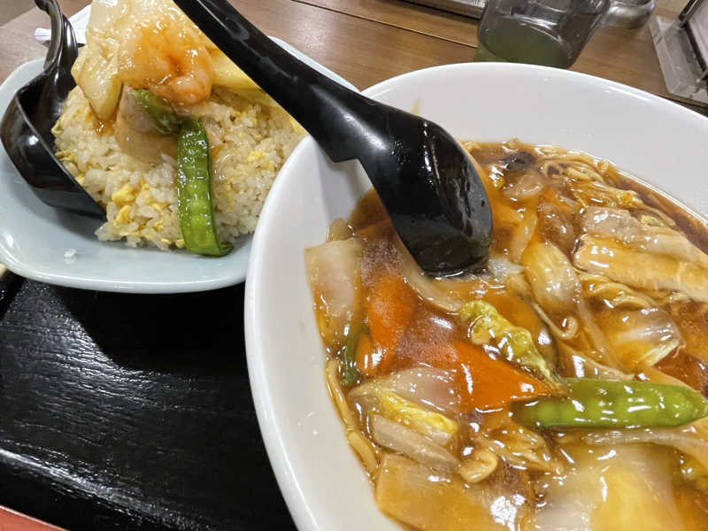 広東麺はビンゴの景品👍 広東麺普通盛と玉子チャーハンで腹パン🥰