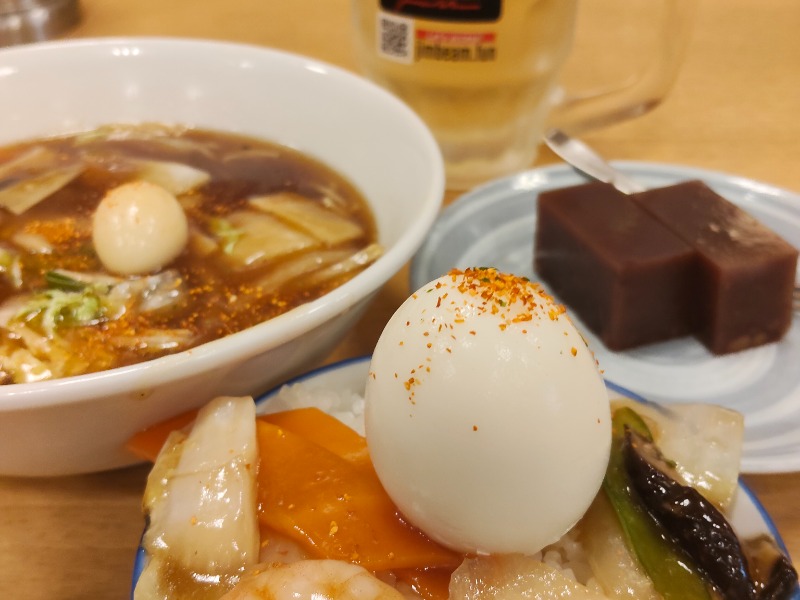 広東麺小盛り+大ご飯。涙が出るほどうまい…!