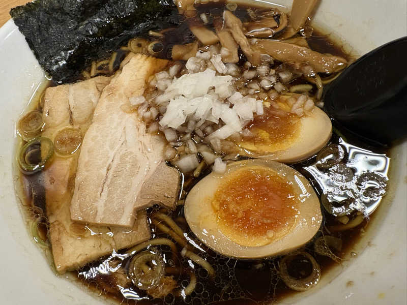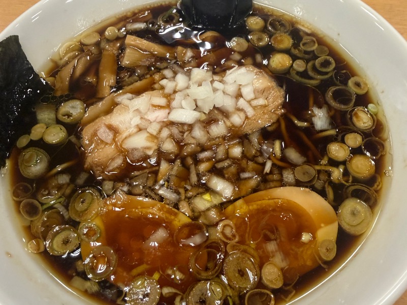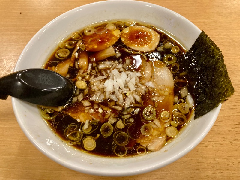 色に反して優しめの味でネギの風味が素晴らしい! あっさり系の醤油ラーメンでトップレベルに好きかも!