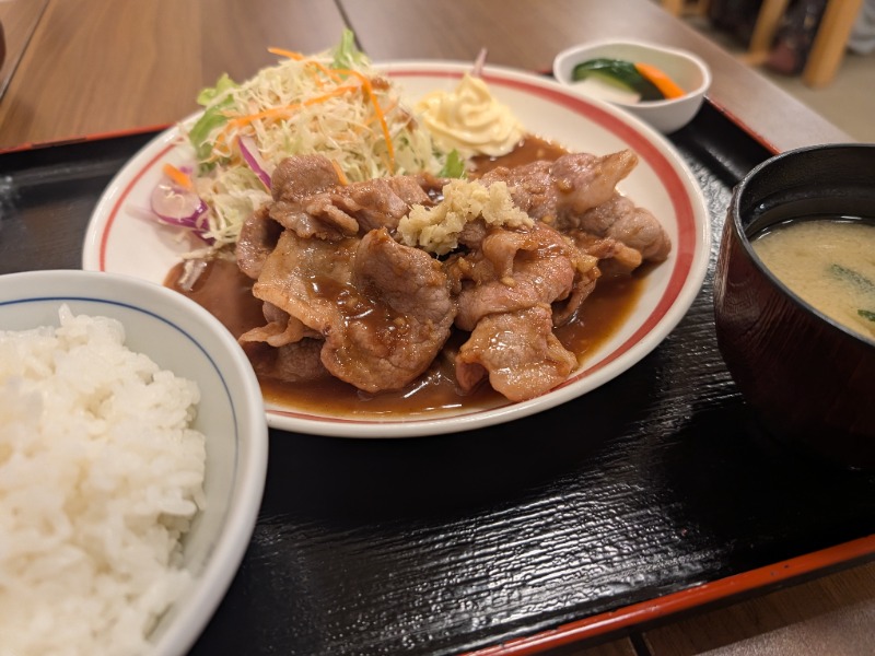 肉が柔らかい!味付けしっかりでご飯進む味。付け合わせのぬか漬けも嬉しいポイント。