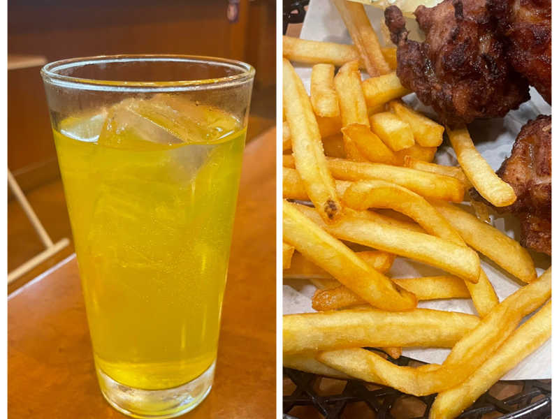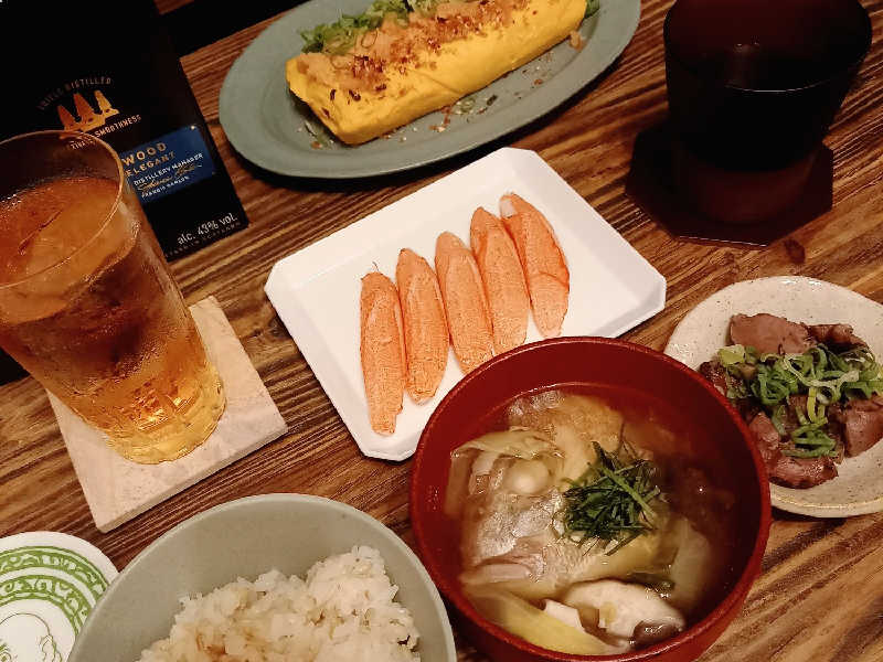 久しぶりにサウナ後のお酒🥃 おつまみも美味しいです、はぁ幸せ