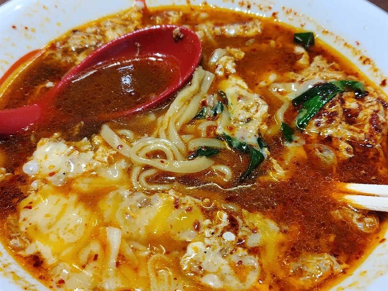 激辛?にしたけれど旨辛な感じでずずっとイケて最高。 草加健康センターの酸辣湯2辛よりはマイルドかも。