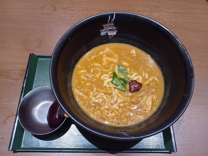 麺が少し平たい。旨辛というより甘辛。 とろみのあるスープがクセになる。 こりゃうめぇ。