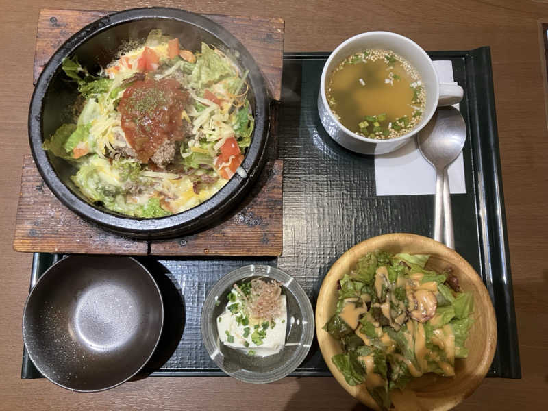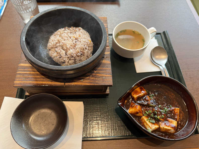 おこげが出来てて、最高😀 付け合わせのお豆腐が甘〜い。
