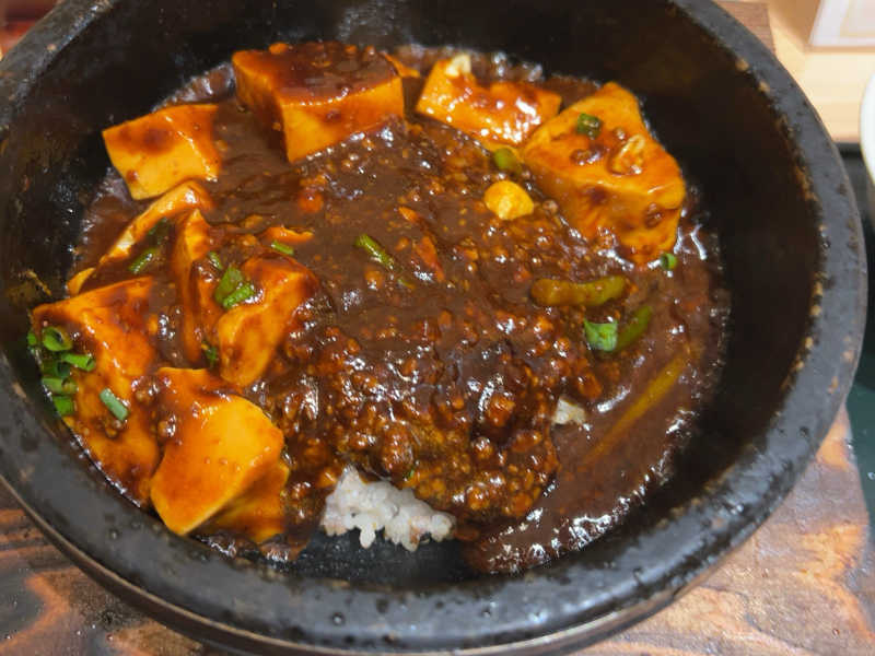 ライスをしっかりカリッと焼いて麻婆豆腐をかけるとめっちゃ美味しい