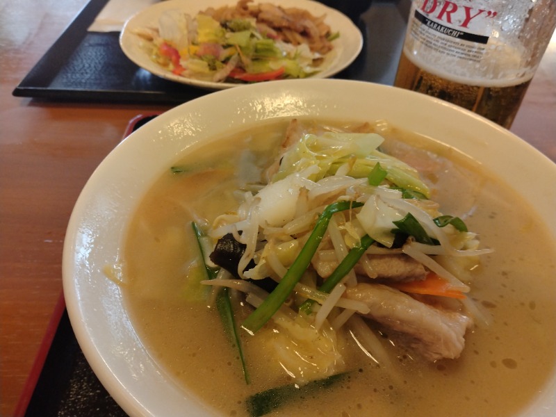 肉も野菜もた〜っぷり♪普段ラーメンて食べないんだけど、サ飯では汁系が欲しくなるのかチョイスしてしまう