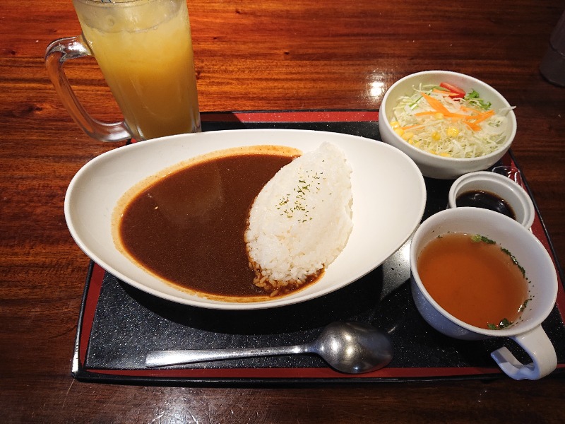 サウナ飯の定番カツカレー 分厚いカツだが柔らかい