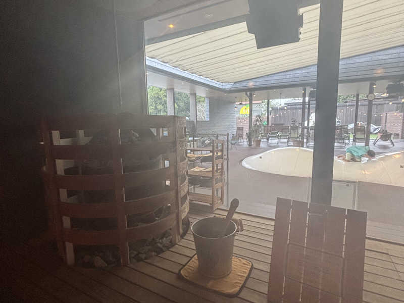 5分に1杯かけ砂時計を回す。こういった施設には珍しくロウリュ水にアロマが入っており今日はハーブのような清々しい香り。どういう仕組みかロウリュ特有の焼けるような熱さはなくちょうど気持ちよく感じるくらいに体感温度が上がるので、1セットに2回ロウリュしても意外と耐えれる。(それでも熱いは熱いが)