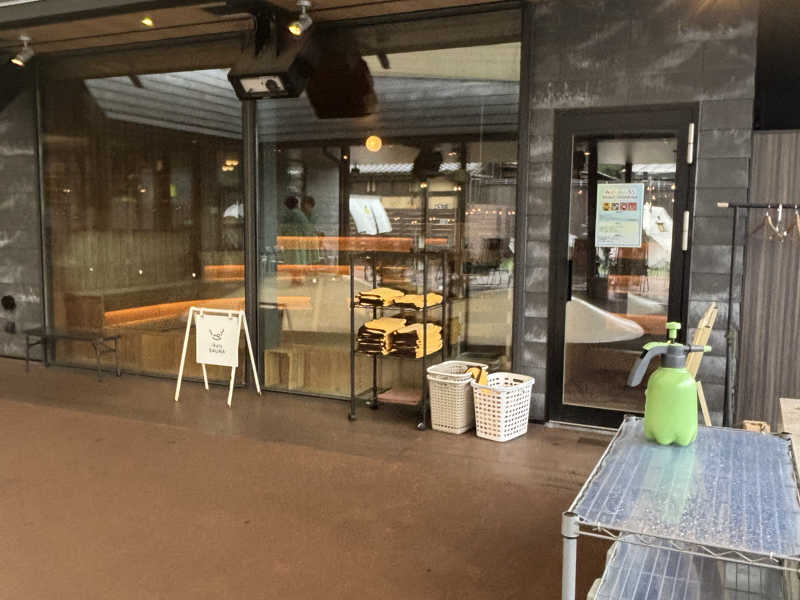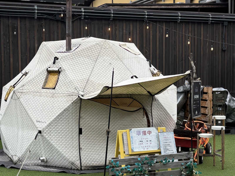 雨のせいかテント入口のファスナーが壊れているせいなのかテント内が全然温まっていない💦てことでテントから出てそのまま共用サウナへ
