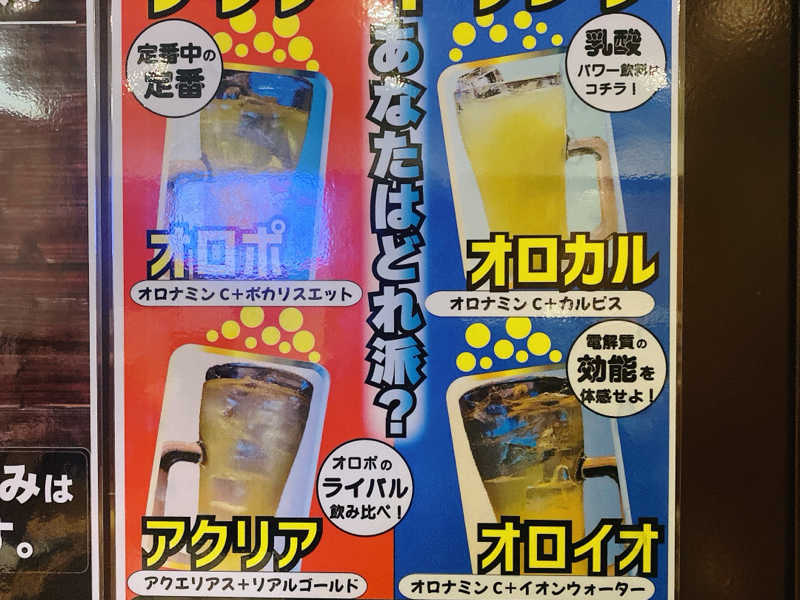 食事メニューにデカ盛りフードメニュー、大きいサイズのドリンクが有り、サウナ上がりにたくさん食べて飲みたい方には嬉しい。