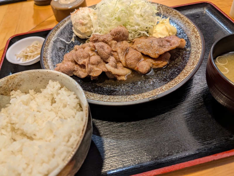 ベタな味付け。ベタな付け合わせ。それがとても良い。 味噌汁はあんまり美味しくないです笑