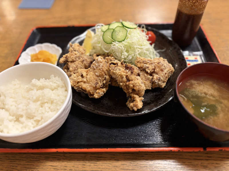 唐揚げ大きい。高価なキャベツもたくさん乗ってる。