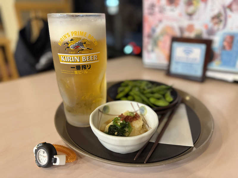 生ビール大:870円 おつまみセット:390円(枝豆+三色豆腐)