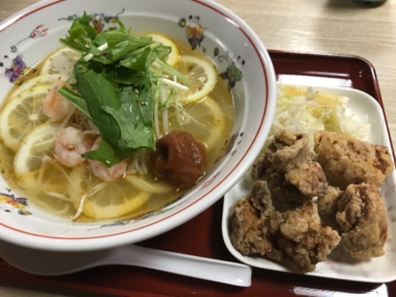 さっぱり塩ラーメンに梅が良いアクセントに♪