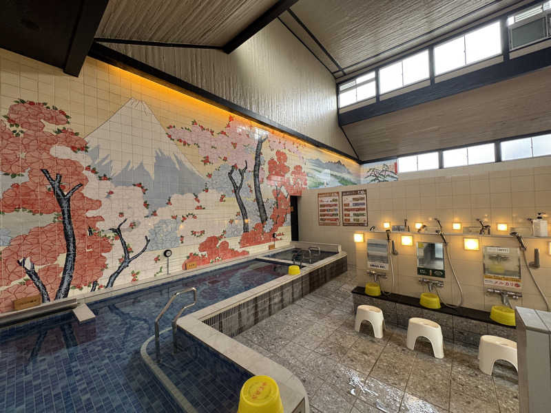 #無料給水器なし、イオンウォーターあり、ハットフック未確認(飲み物等をおける棚あり)、サウナマットあり、12分計なし、テレビなし、黙浴表示未確認、ドライヤー20円、サ室から外水風呂への動線上の扉は一方通行