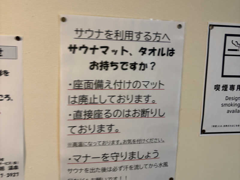 途中の廊下にサウナ室マット敷いてないので持参してくださいとの貼紙が。