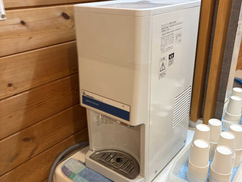 シンプルな脱衣所は清掃も行き届いており、綿棒と冷水機が備えつけられています。
