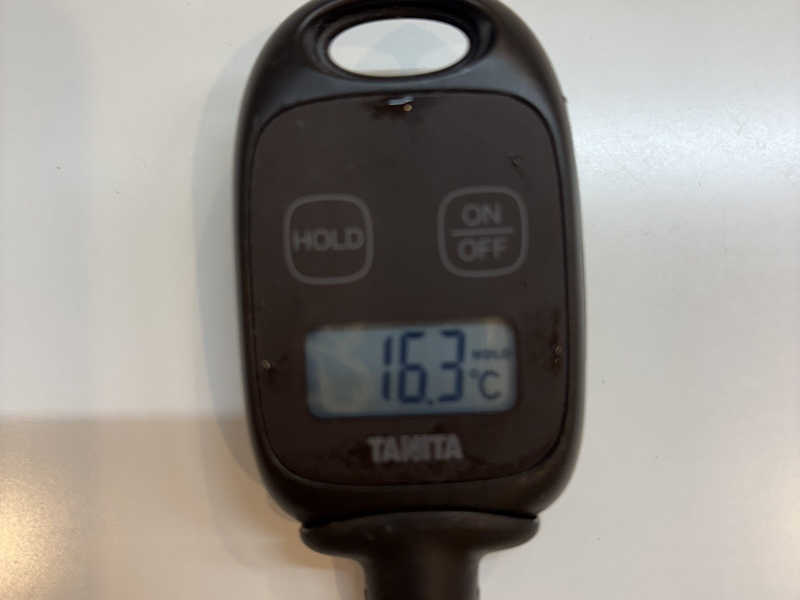 10時からっていうのでこの後もう少し熱くなるかもと少し時間置いて入ることにしてとりあえず水風呂バスタブの温度を測ってみる。