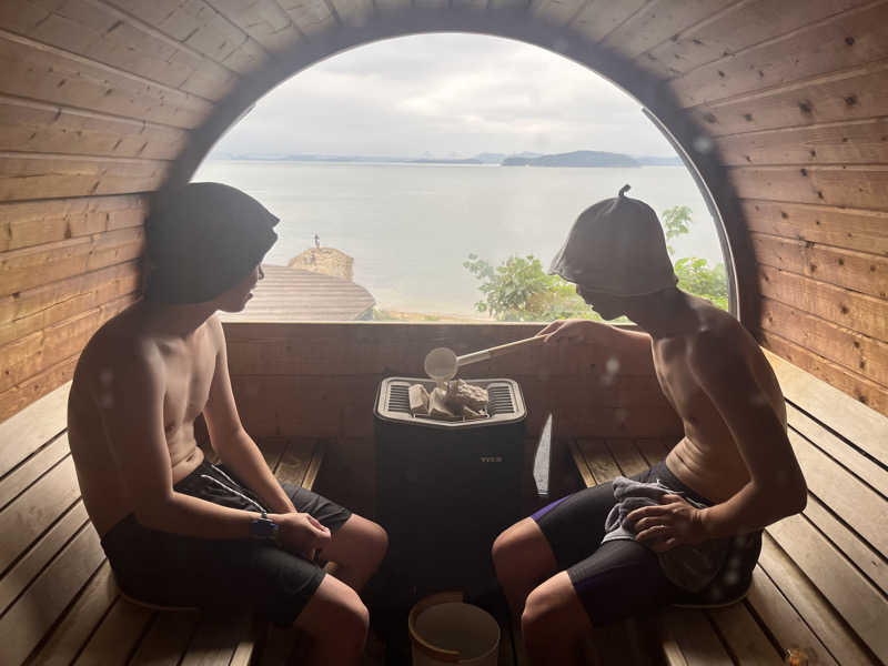 朝起きて海沿いを散歩したあと、部屋のデッキで瀬戸内海を眺めながら、鯛茶漬けと挽きたてのコーヒーをいただくという最高のスタートダッシュを切り、満を持してサウナへ🧖♀️