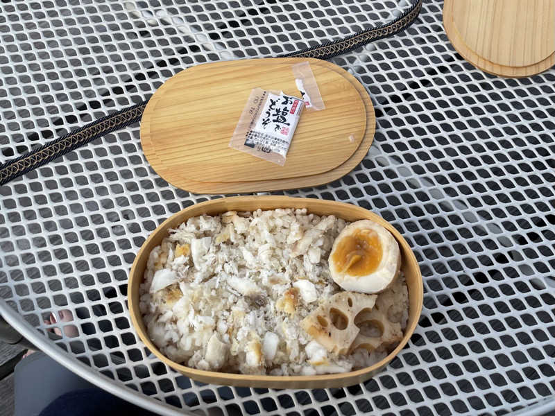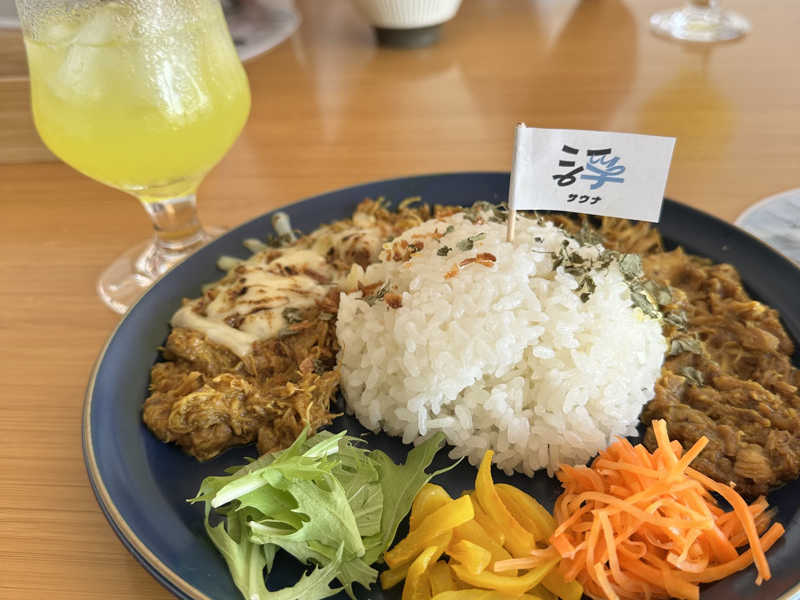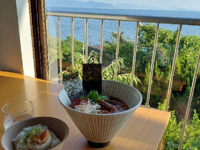 締めサウナ飯は、海老煮干しそば。これがとにかく美味しかった。。美しい場所、海を見ながら食べるそばと味噌玉子ご飯は最高の一言でした✨