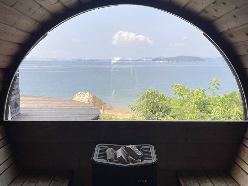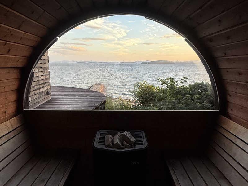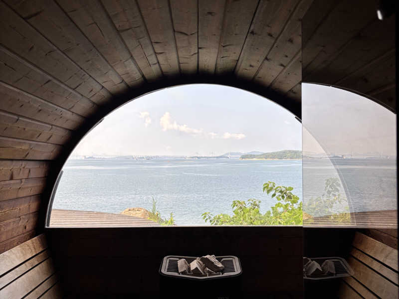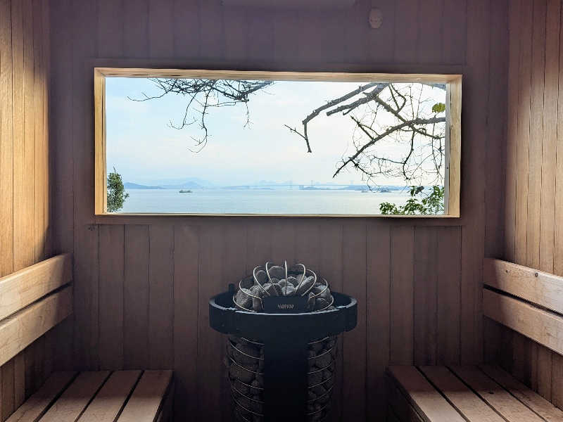 サウナ小屋には窓がいており、そこから見える先ほどとは打って変わって穏やかな瀬戸内海を望みながらサウナを楽しむことができる。