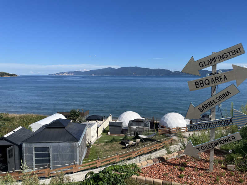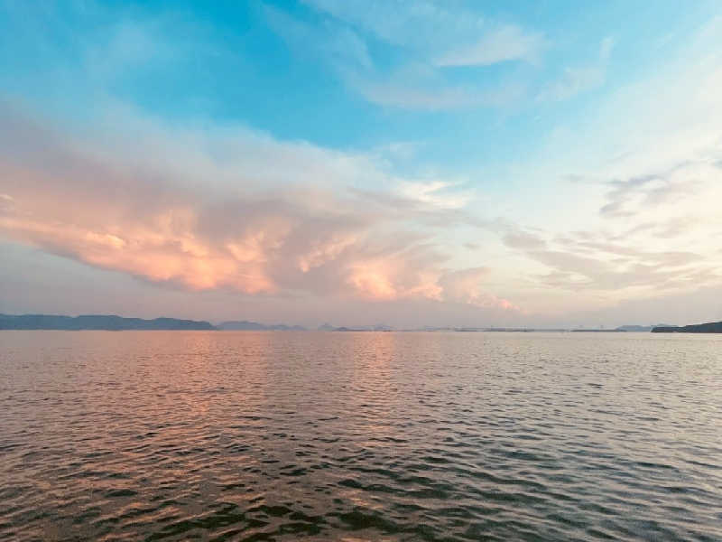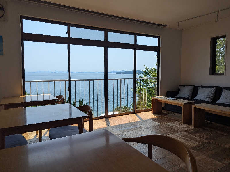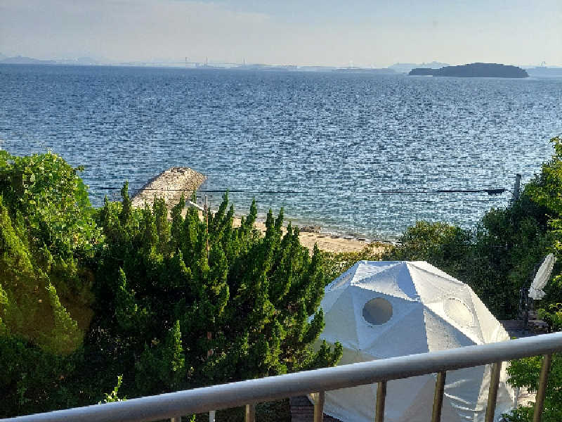 〆は目の前に海が広がる外気浴。施設が少し小高い場所にあることもあり遠くの島まで見える景色が最高。児島の荒れていたレースとは一転、別物の穏やかな波と蝉が奏でるBGMは癒しそのもの。