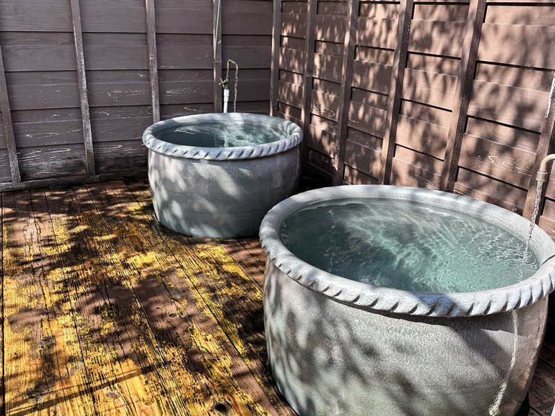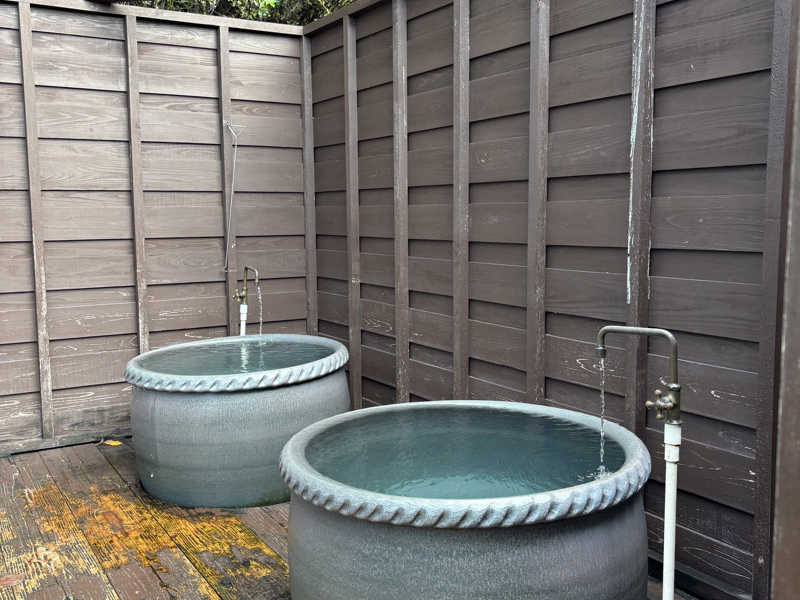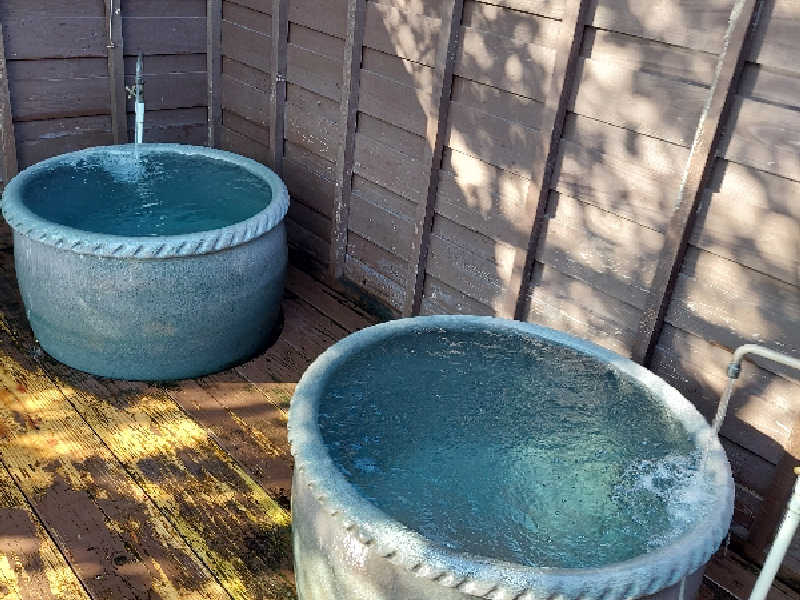 ・水風呂は壺風呂で1人ひとつ専用。井戸水か?と思うくらい冷たくて一気に体が冷えます。