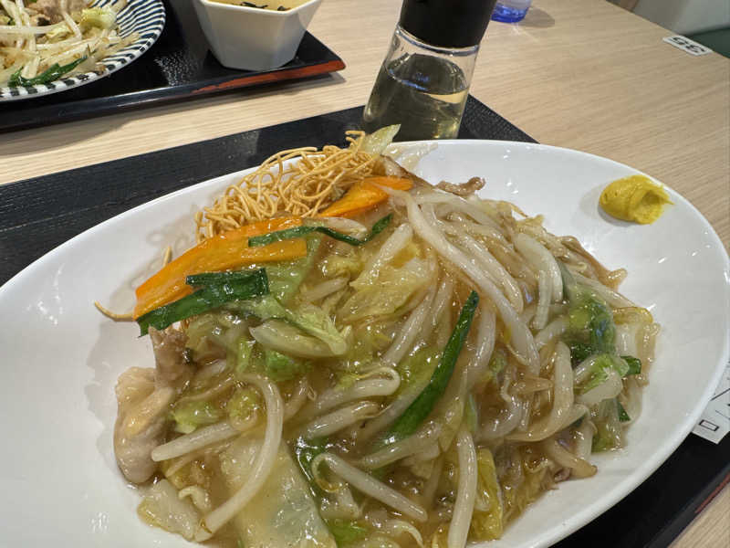 モチモチの太麺でウマー! お酢とラー油で味変してまたウマー! クセになる美味さ。