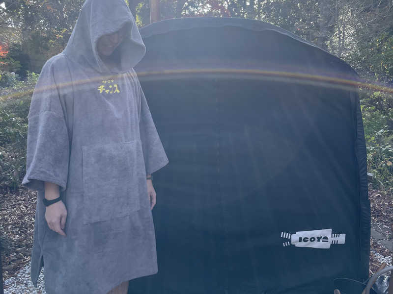 あと、先日スリコで買ったサウナポンチョを着用👕寒い外気浴にはポンチョは心強い味方ですね✌️
