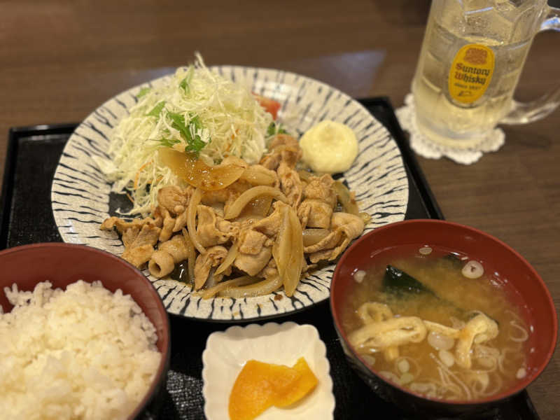 このビール、冷え冷えグラスに入っていて。これなんですよ。求めてたのは。生姜焼き🫚もボリューミーで⭕️