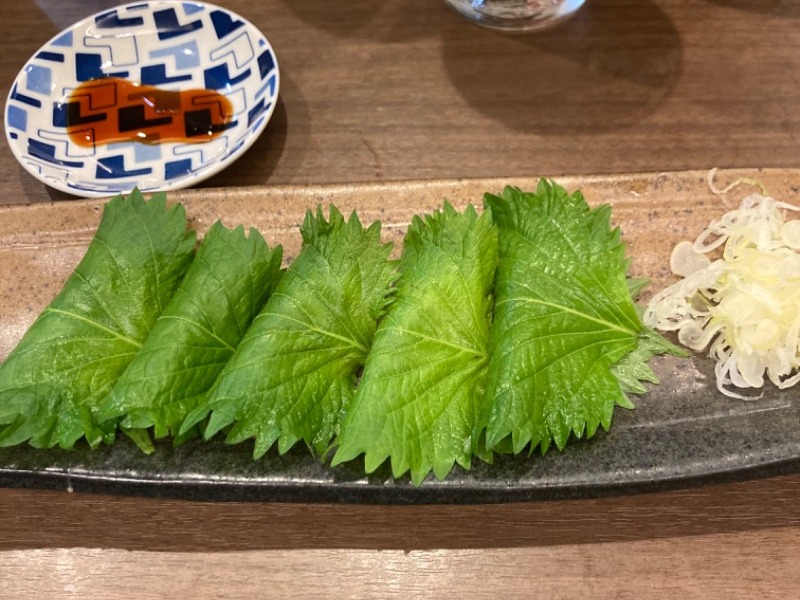 薬味(シソ)×薬味(ネギ)×薬味(ワサビ)のコラボレーション!珍しいメニューでつい頼んだが美味しい