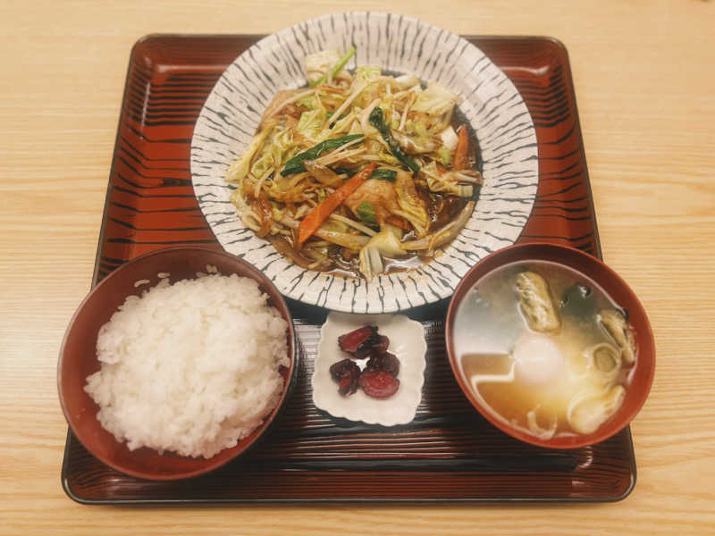 塩と胡椒がちょうどよく、定番の野菜炒めでご飯が進む。