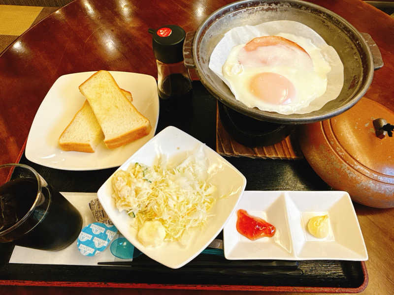 おはよう☀サ活4セットしたあとの朝ごはんです。半熟目玉焼き🍳うまぁ🎵