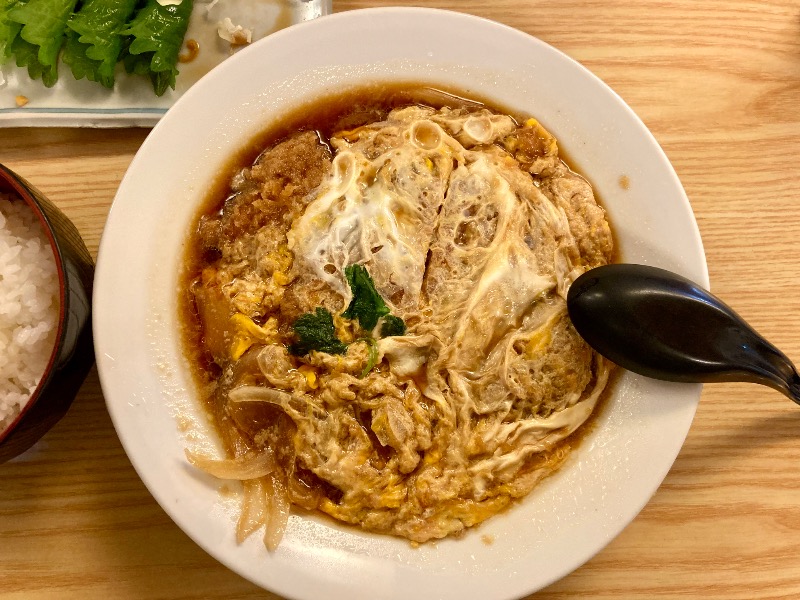 大人な味付けのカツ煮と味噌汁、そして美味しいご飯のコンビネーションがたまりません