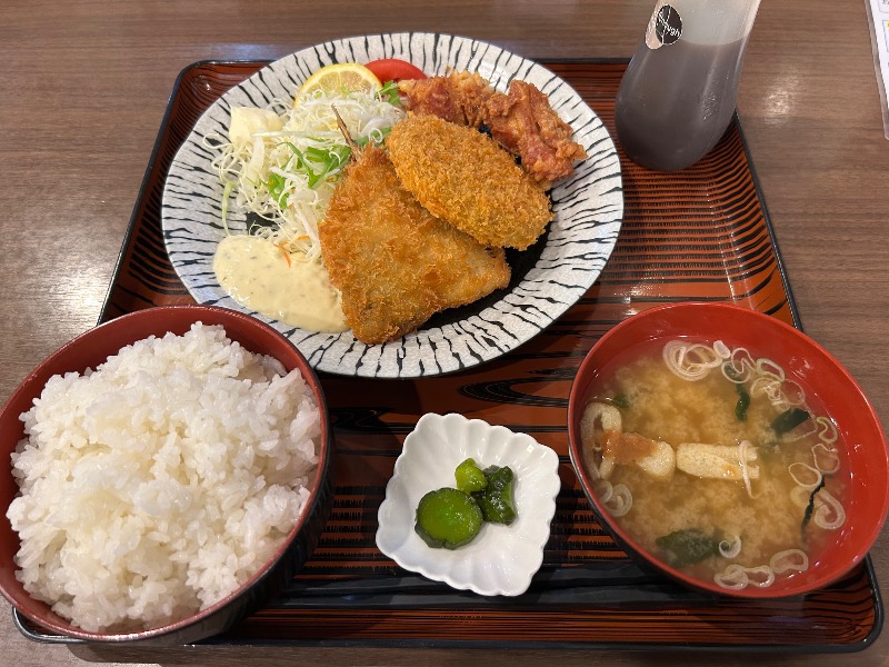 Aランチの三種盛りは唐揚げ(2個)選べる🤤