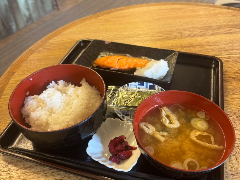 8時からの朝食メニュー✨脂の乗った塩鮭がメッチャごはん進む✨こーゆーのでいいんだよってセット🥹✨
