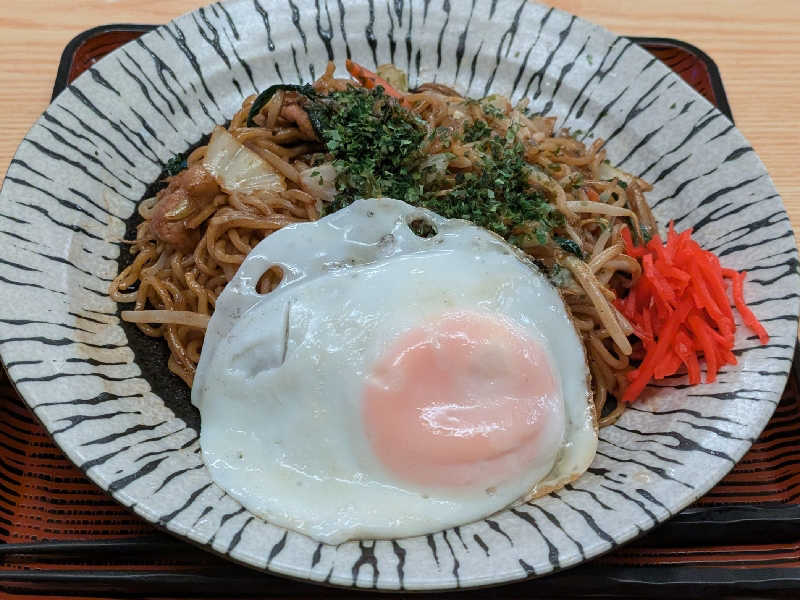屋台風でソース多め、紅生姜あり、具材たっぷりなのが嬉しいですね。