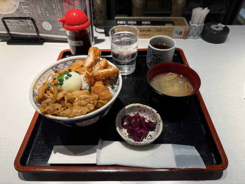 ボリューム満点。すた丼の肉にチキンカツですね。