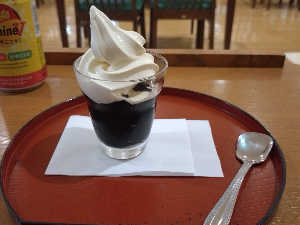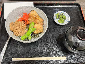 母はミニ丼とビールだけで良いというので分けた。蕎麦美味い。