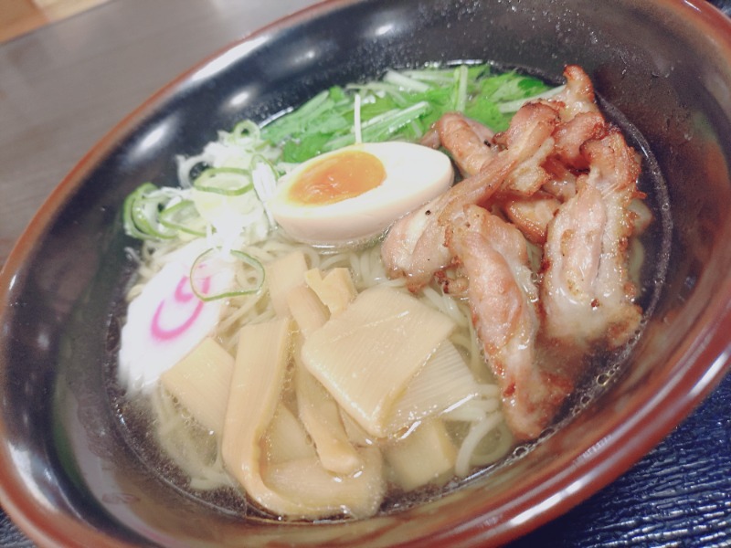 鶏塩ラーメン。優しい塩スープと胡椒の効いたせせりの濃い味が意外とマッチしてた。