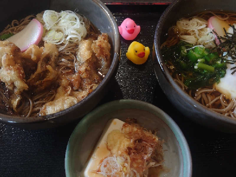 冷たいお蕎麦にご飯セットと温玉。大満足。