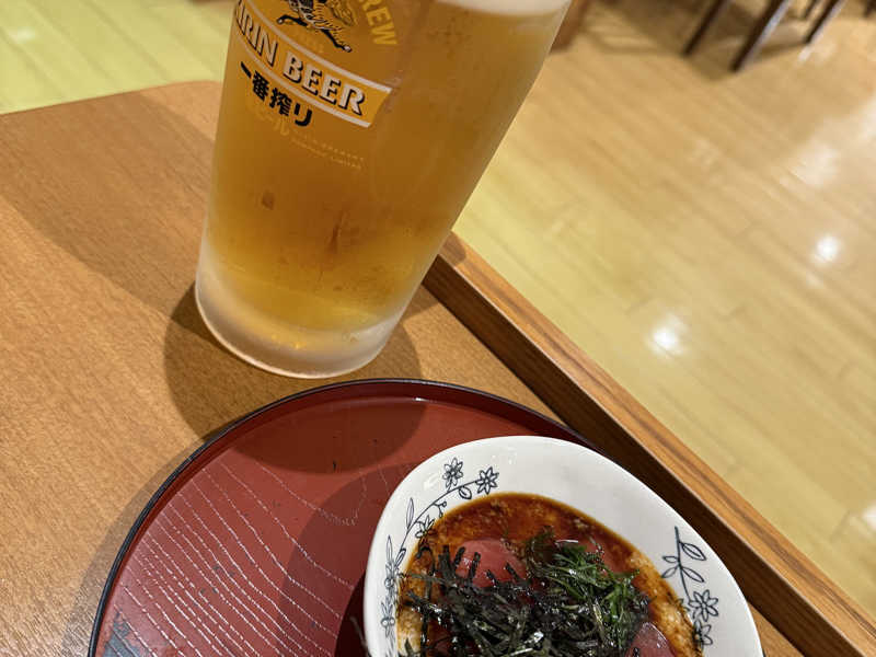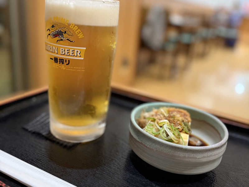 母はミニ丼とビールだけで良いというので分けた。蕎麦美味い。