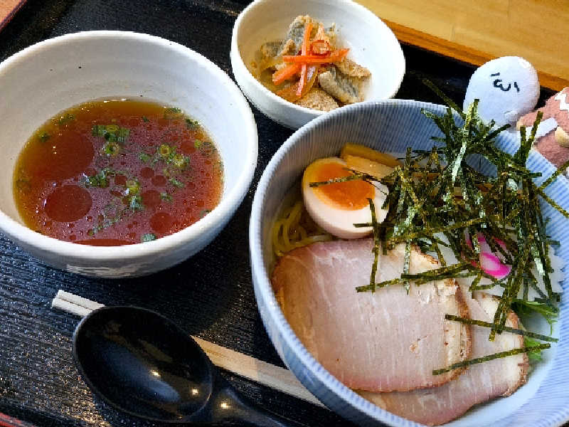 彩りつけ麺 さっぱりとした酸味のあるつけ汁がお風呂上がりに善き 鯵の南蛮漬けで追いさっぱり