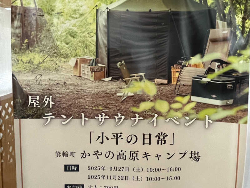 *帰り際の出入り口扉に貼ってあったチラシで熱波師・小平の日常さんのテントサウナイベントが11/22に箕輪町であることを知る🤔